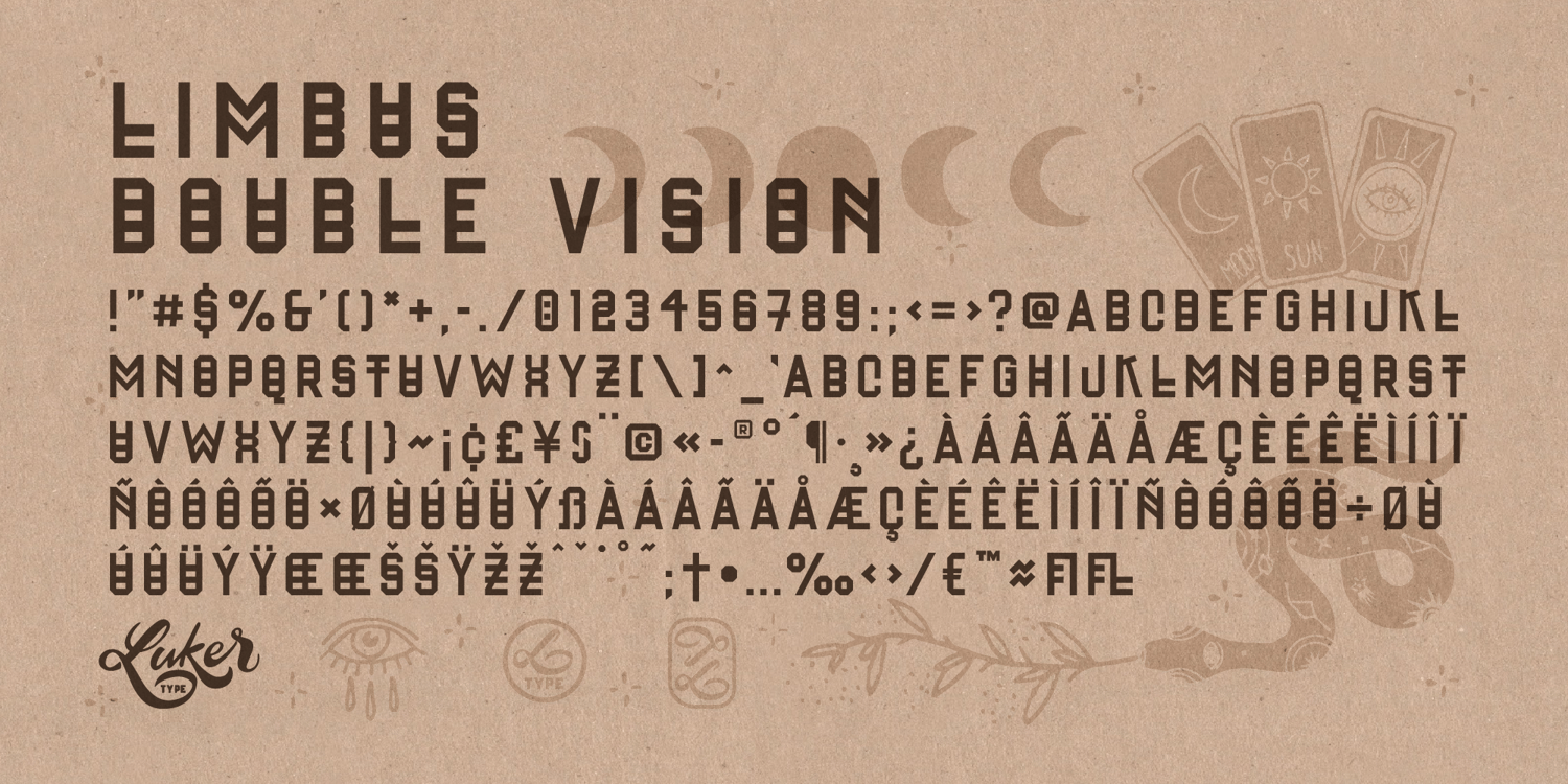 Limbus DoubleVision is a psychedelic approach on the Limbus Sans Family. Ever wanted to start your own cult? Or do you want to sell your old black candles to suspicious-looking teenagers? Well, it can all start here. Desktop licence for commercial use. After purchase, you can download the OTF font, and as the licence holder you may use it for any personal or commercial project on 1 to 50 devices. If you need more devices, contact me.